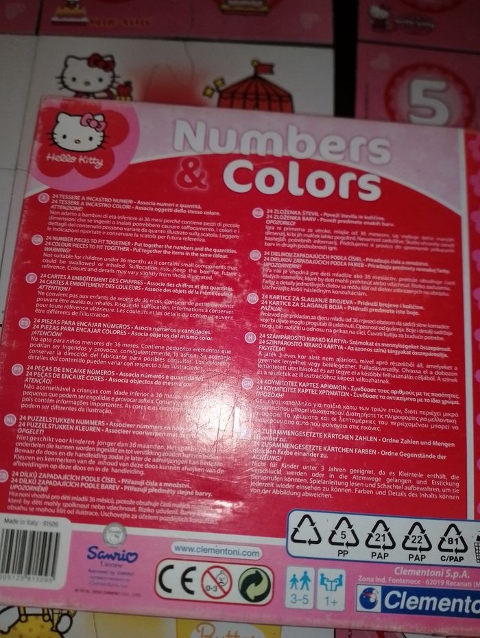 Hello Kitty puzzle numbers & colors pour apprendre les couleurs et les nombres tout en s'amusant 2 en 1 24 cartes a emboîté de chiffres 24 de nombres Pour 4 pièces ou 2 pièces Idéal cadeau anniversaire, noël, Pâques, saint Nicolas, sainte Catherine