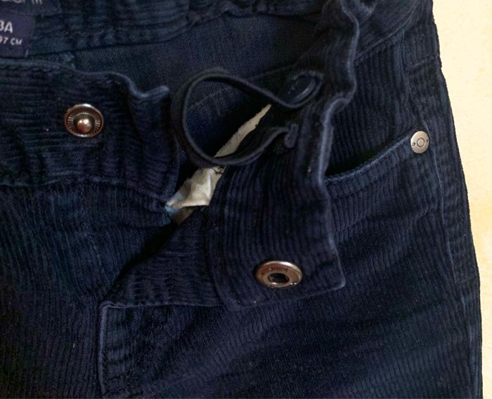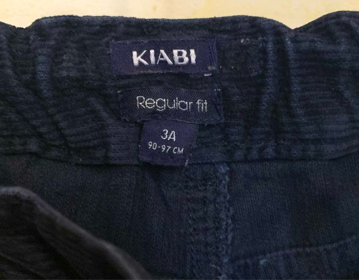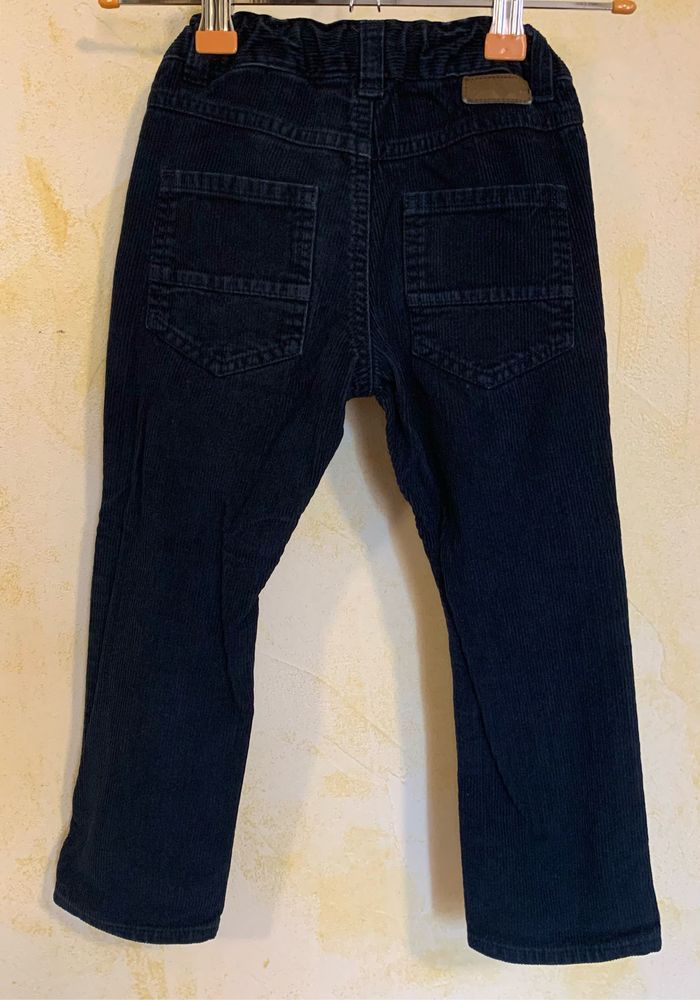 Pantalon en corduroy Kiabi T3/ 90/97cm ceinture élastique à passants, taille ajustable par l’intérieur par élastique à boutons, Regular Fit, 5 poches, couleur bleu foncé. Fermeture bouton pression #3ans #garçon #corduroy #pantalongarçon #Kiabi #cc_garcon3ans