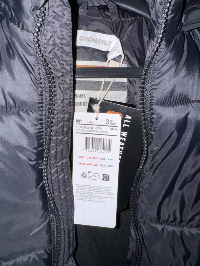 Neuve, encore étiquetée. Trop grande pour mon fils mais je ne possède plus l’emballage d’origine pour effectuer un retour. Collection actuelle. En vente chez orchestra au prix de 55,99€. 3ans (98cms).