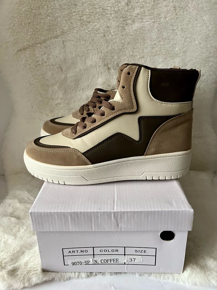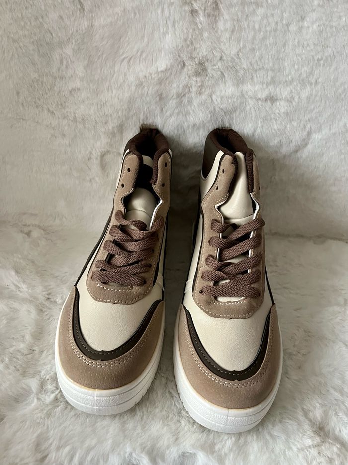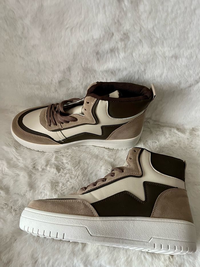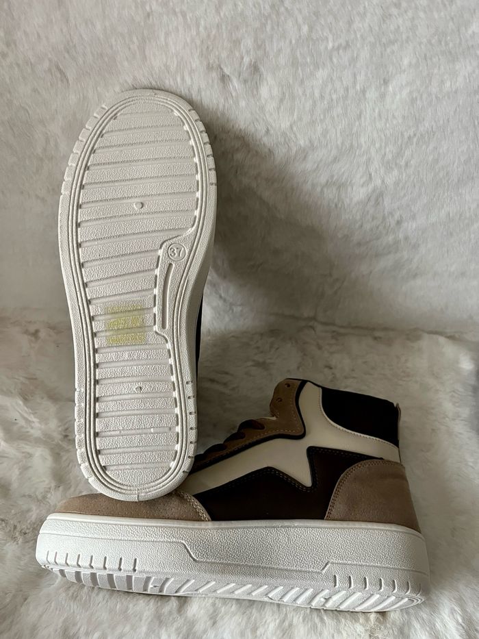 Baskets montantes beiges et marrons pointure 37 matière simili cuir et effet daim Dans sa boîte d'origine