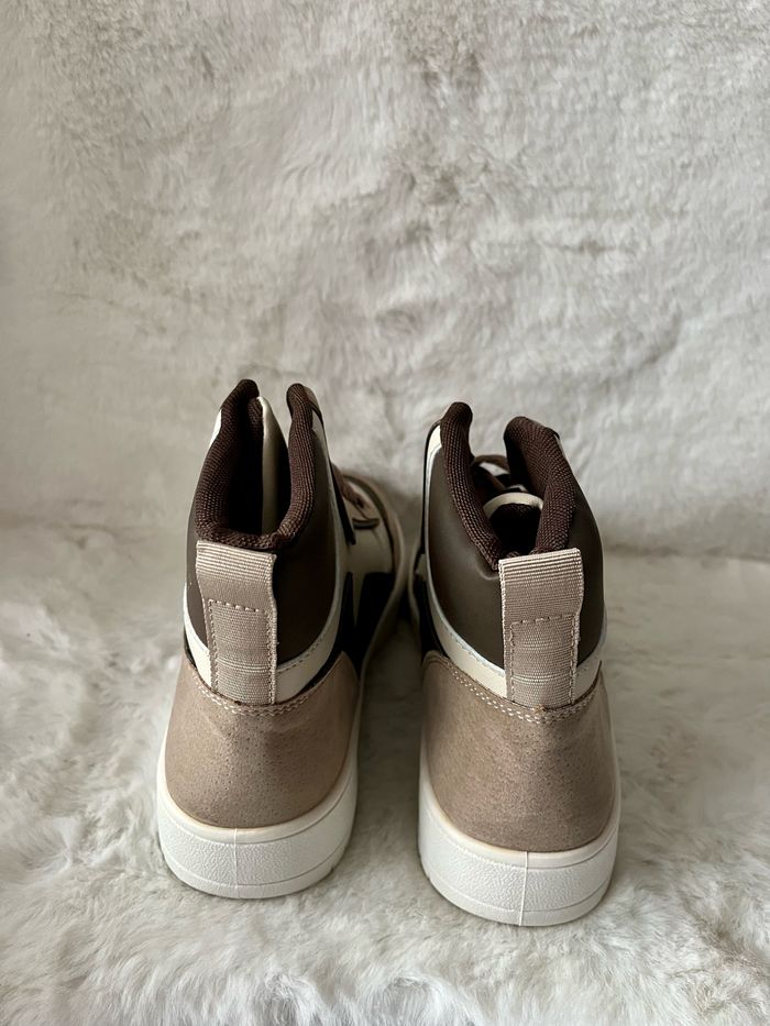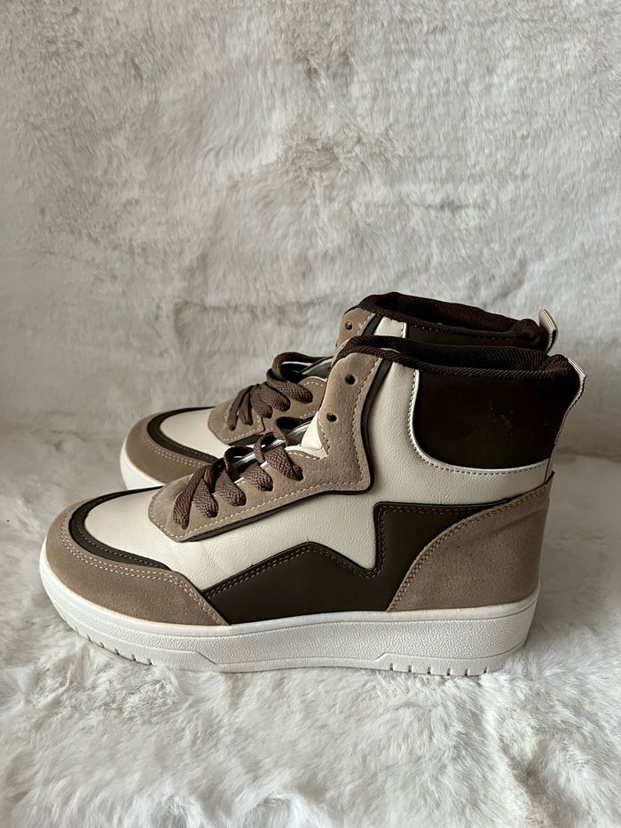 Baskets montantes beiges et marrons pointure 37 matière simili cuir et effet daim Dans sa boîte d'origine - photo numéro 1