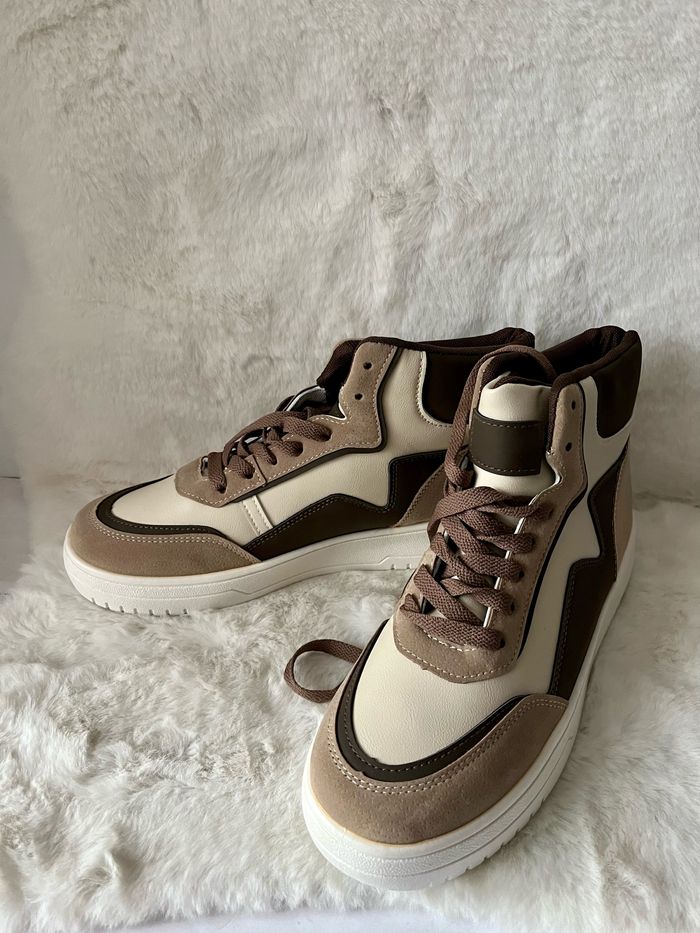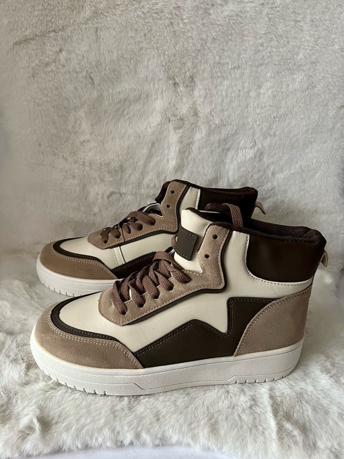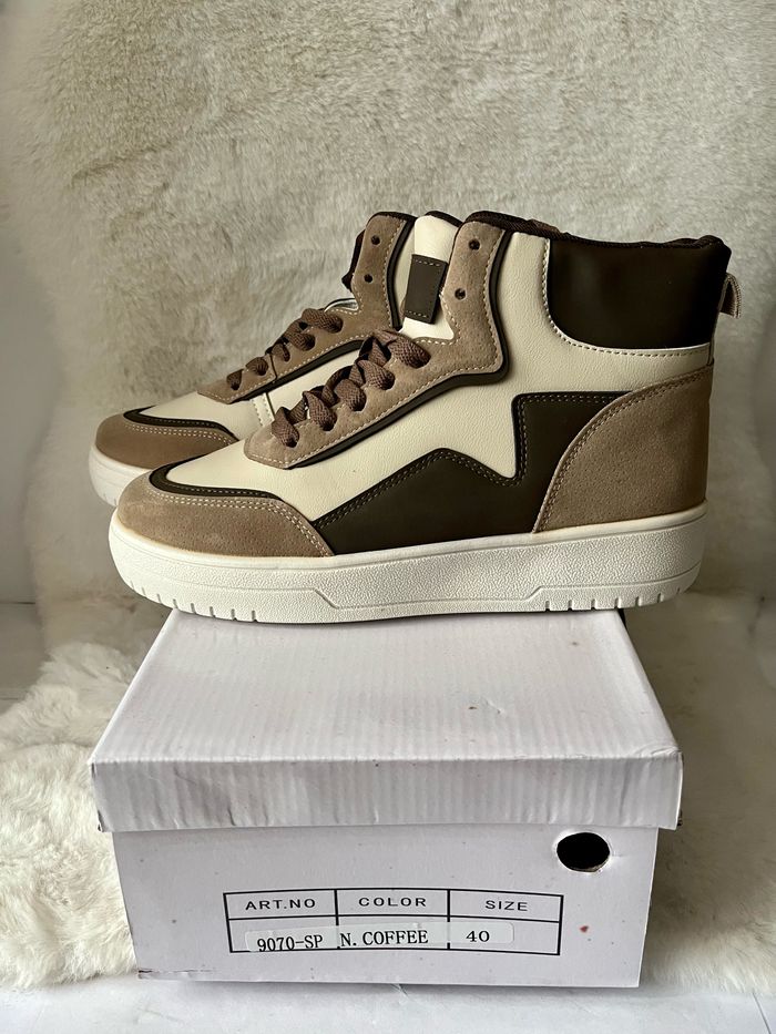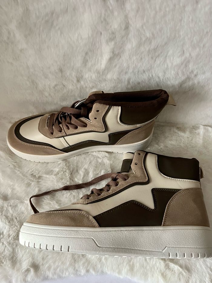 Baskets montantes beiges et marrons pointure 40 matière simili cuir et effet daim Dans sa boîte d'origine - photo numéro 1
