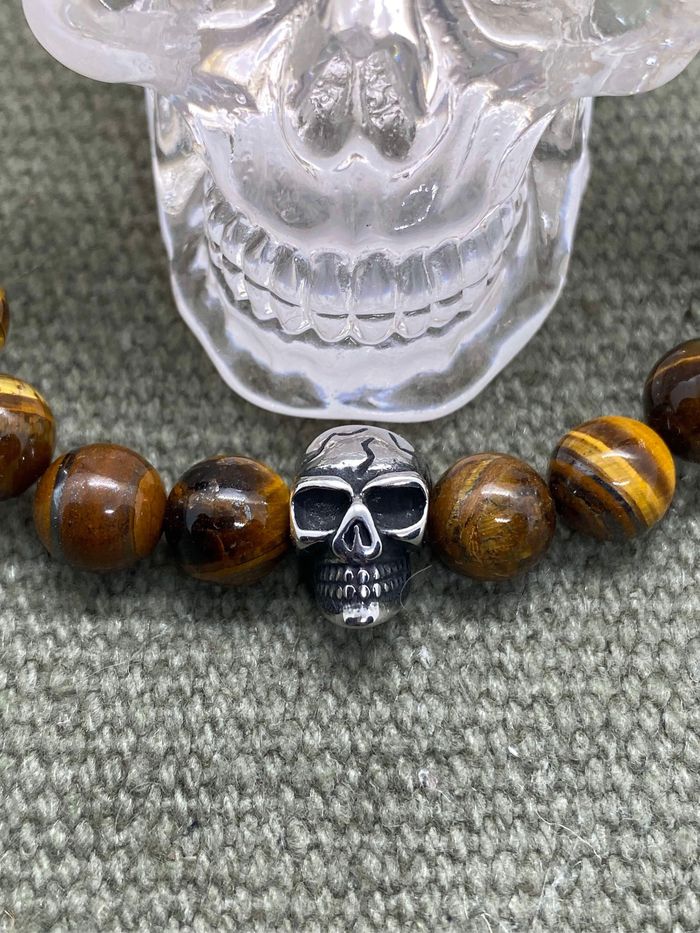 Bracelet œil de tigre et tête de mort , lithothérapie - photo numéro 1