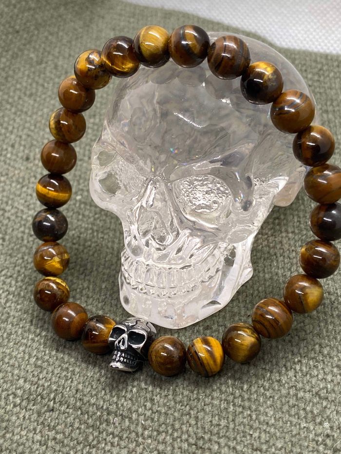 Bracelet œil de tigre et tête de mort , lithothérapie