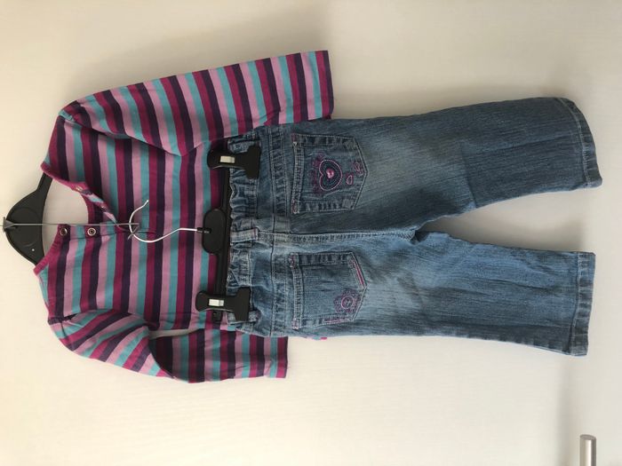 Ensemble fille composé de deux pièces: un haut manches longues et un pantalon Motif rayures et fleurs Marque Kimbaloo (haut) et Dopodopo (bas) Taille 2ans