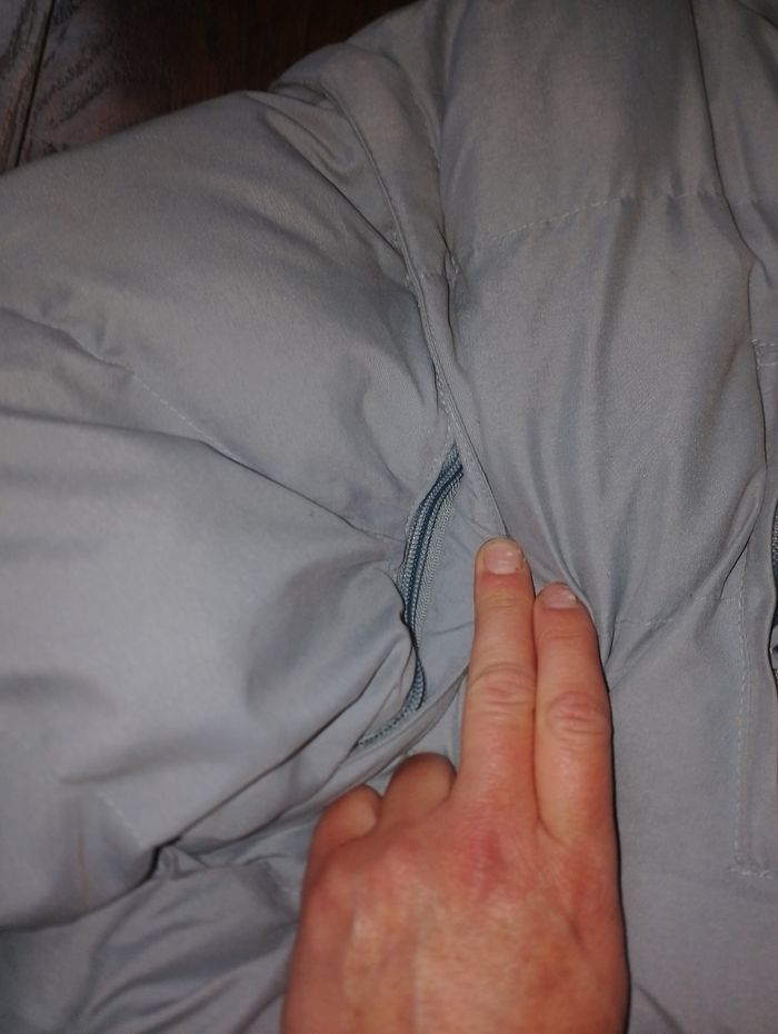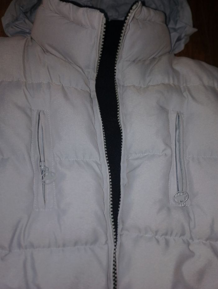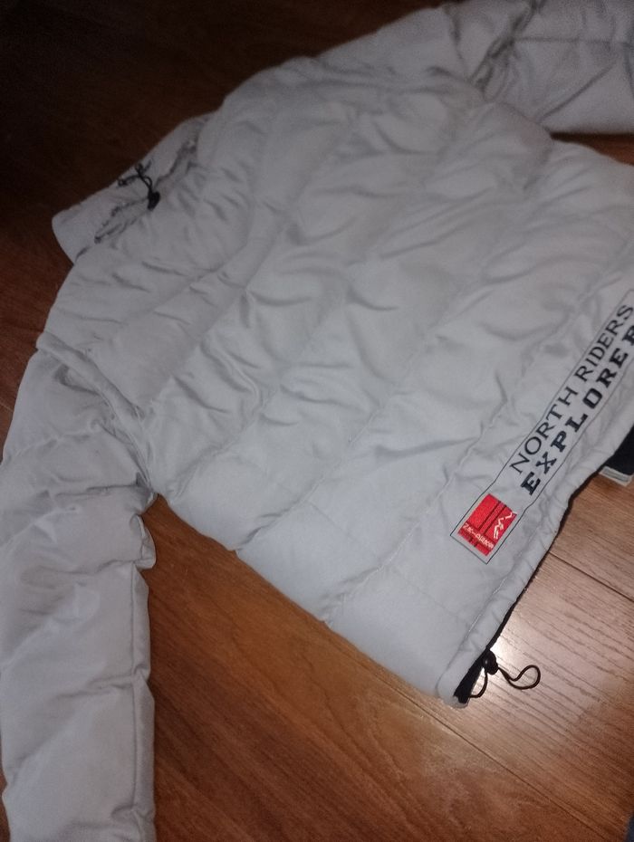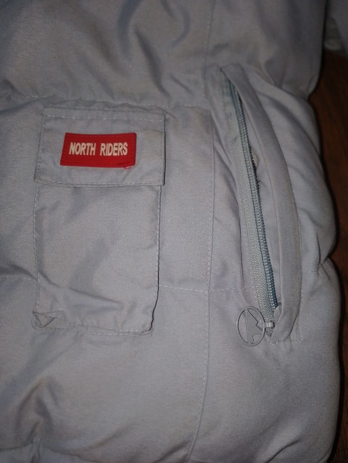 Manteau, doudoune sans manche 2en1 North Riders Explorers * Manteau très chaud, * Taille M * Bleu plus beau en vrai que sur la photo qui fait plutôt gris * 2 en 1 possible d'y faire doudoune sans manche grâce au fermeture éclair (manche amovible) * Réversible intérieur polaire bleu foncé avec 2 poches * Liens élastique (HS) de serrage sous les bras côté polaire et en bas du manteau aussi HS * Extérieur 4 poches + 1 petite à scratch * Légère capuche caché dans le col du manteau et fermeture par scratch, lien de serrage HS # Prévoir de changer les élastiques ( liens de serrage )qui sont HS # rester au grenier donc besoin d'un lavage.