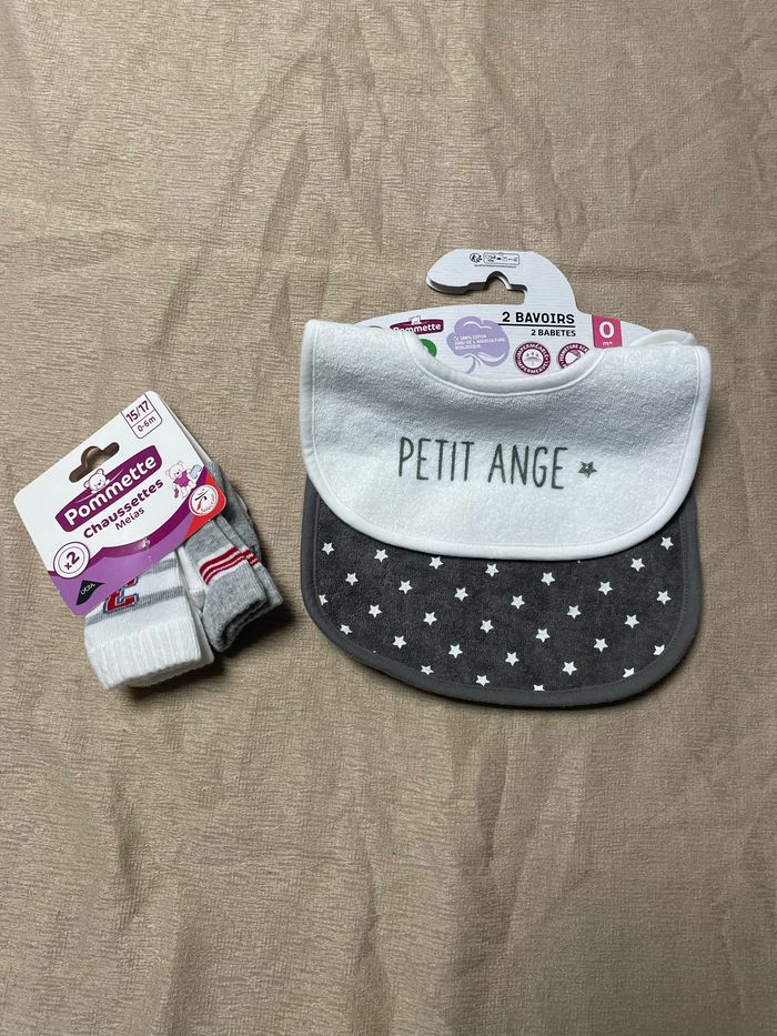 Lot bébé bavoir + chaussette
