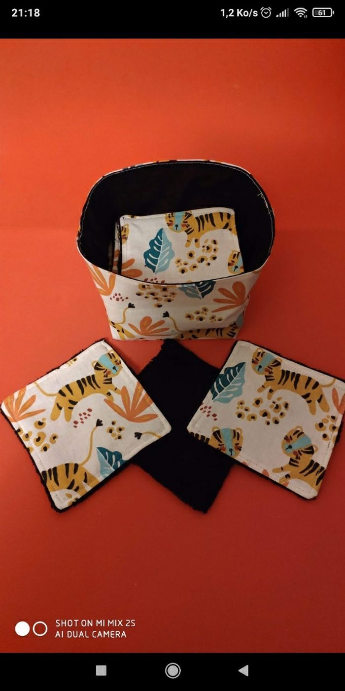 Tissu eko-tex français et éponge bambou noir 10 X10 cm pour bébé et démaquillante pour les mamans 😀......