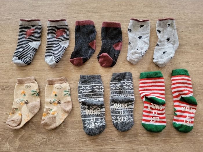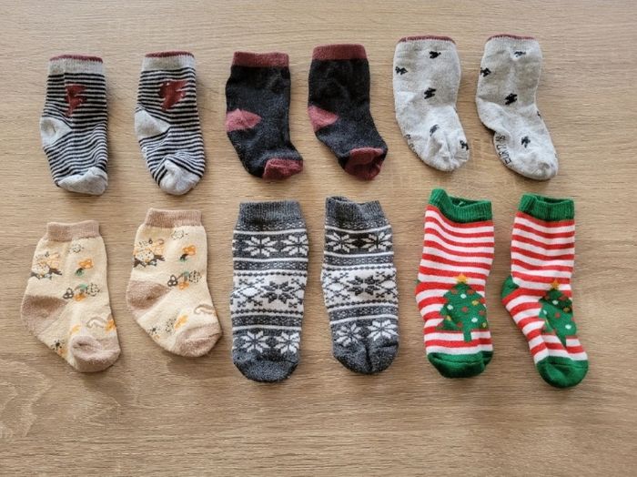 Vend lot de 6 paires de chaussettes garçon taille en 17/18 ou 6/9 mois en bon état (voir photos).