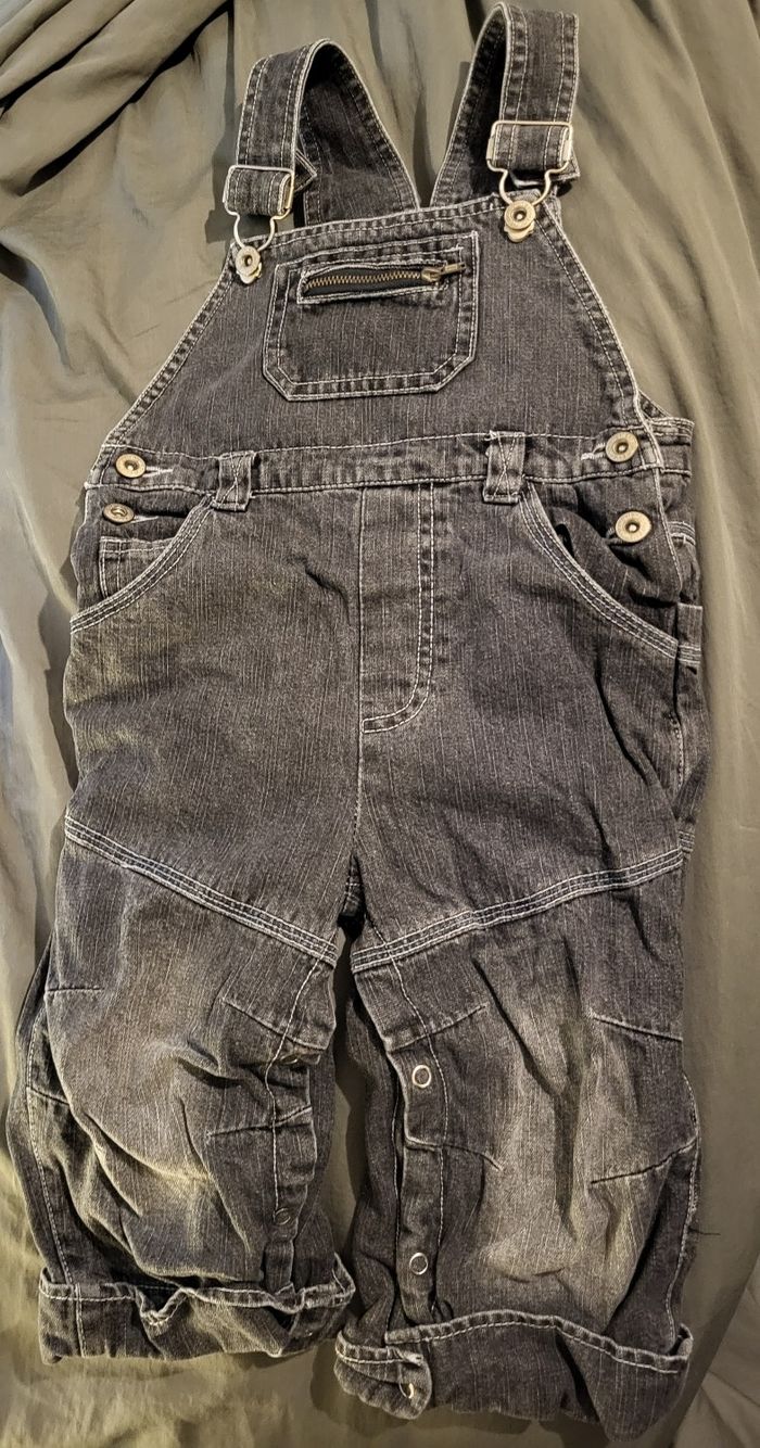 Salopette en jean à pression pour l'entrejambe In extenso 18mois Doublé à l'intérieur Un peu blanche sur les genoux et sous les fesses cf photos