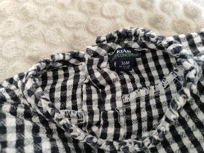 Adorable haut à manches longues vichy noir et blanc KIABI. 36 mois. Très bon état, très peu porté. Trop mignon porté ! Se ferme par des petits boutons à l'arrière.