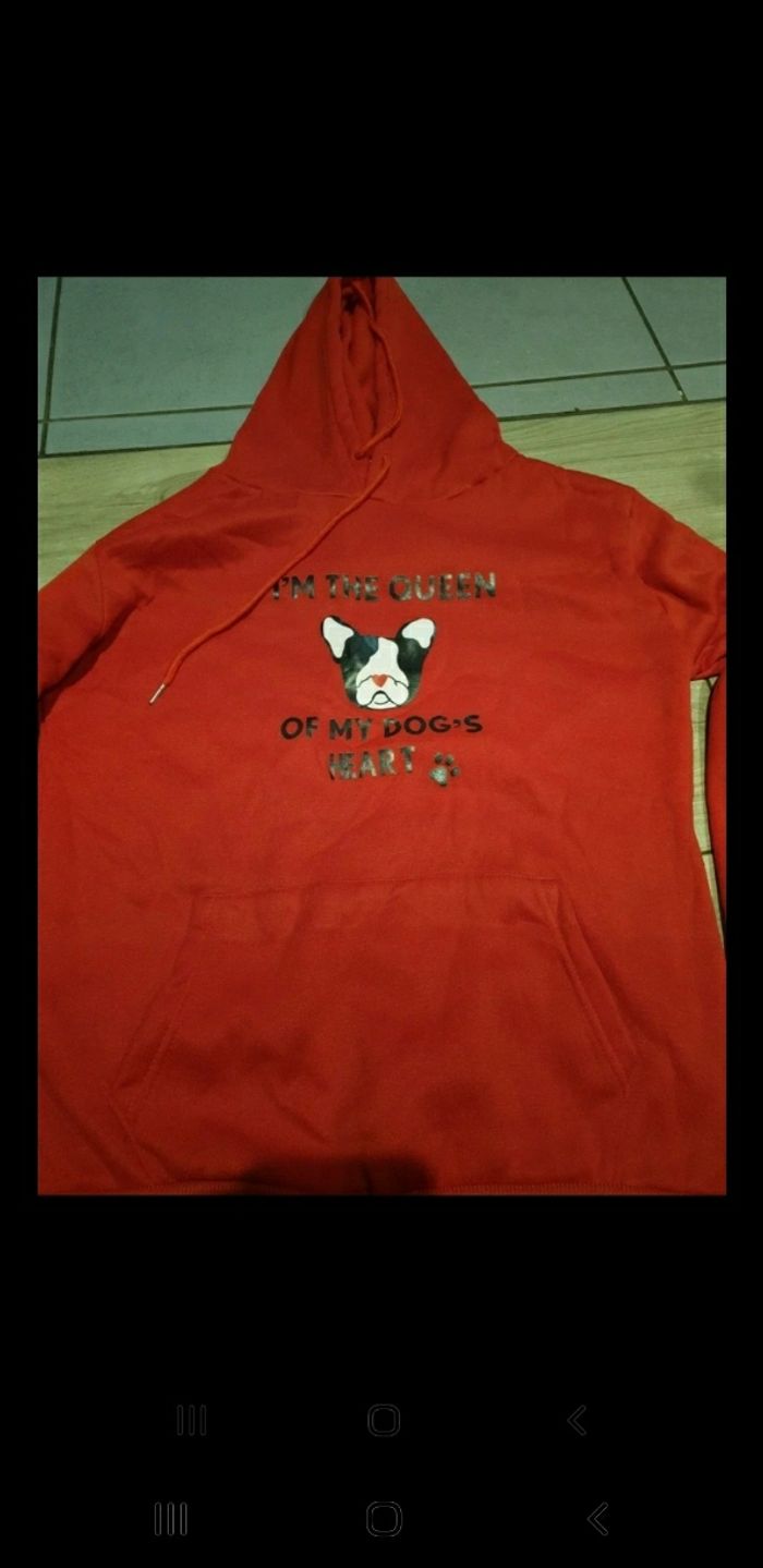 Pull sweat capuche femme avec dessin bouldogue Pas beaucoup porté mais un petit défaut a une couture Taille S