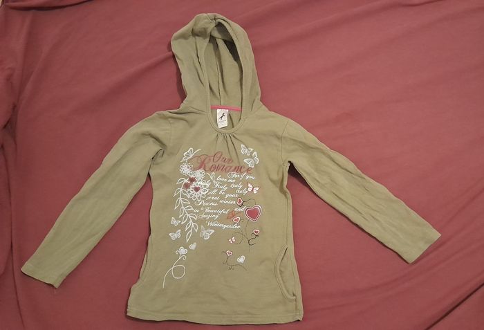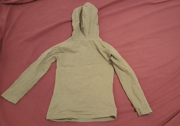 T-shirts manches longues col rond A capuche Poche sur le côté Impression Tâche sur la manche et trace d'épingle à linge- voir photo
