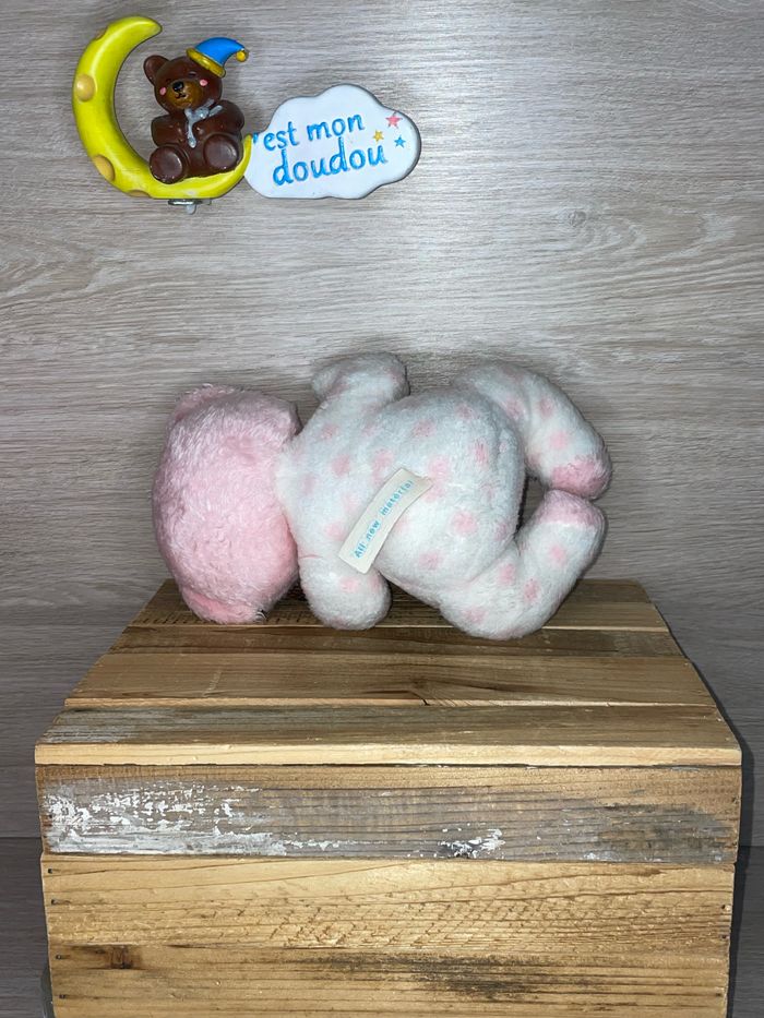 🌺 Bonjour, vendeuse professionnelle 🌺 Je vous propose le Doudou suivant : Marque : NOUNOURS Genre : ours Format : peluche Mesures : 24cm Coloris : blanc pois rose État d’occasion : bon (nez cassé ) vintage Stock : 1 RÉFÉRENCE : NOU152 ➡️ Pour plus de modèles de cette marque, cliquez ici : #nounours_cestmondoudou ⭐️ La décoration (boîte...) n'est pas vendu avec le doudou ⭐️