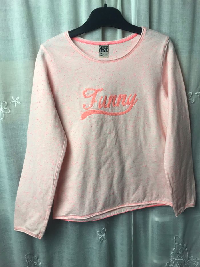 T-shirt moucheté corail Manches longues Funny écrit en sequins devant Taille 10 ans Tape à l’œil