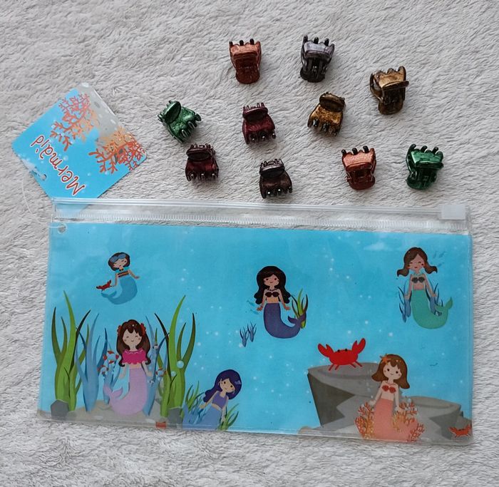 Lot de 10 petites pinces pour cheveux et une trousse sirène - photo numéro 1