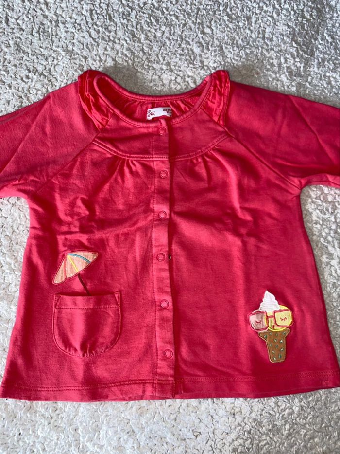 Gilet rose DPAM 2 ans motif glace et parasol boutons pressions - photo numéro 2
