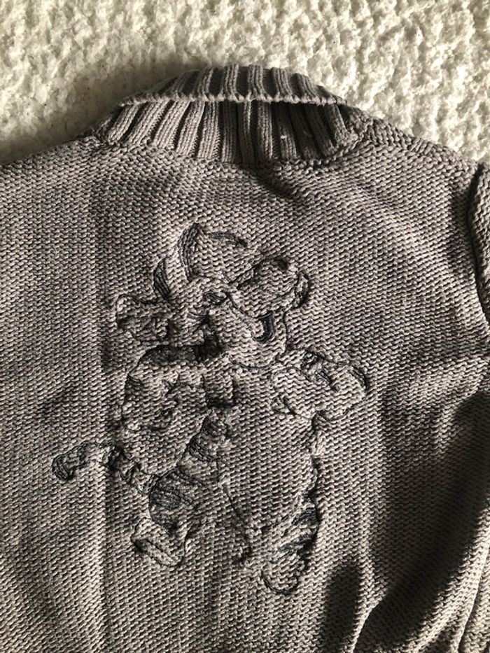 Gilet gris, motif Tigrou dans le dos (Winnie l’Ourson). Très bon état