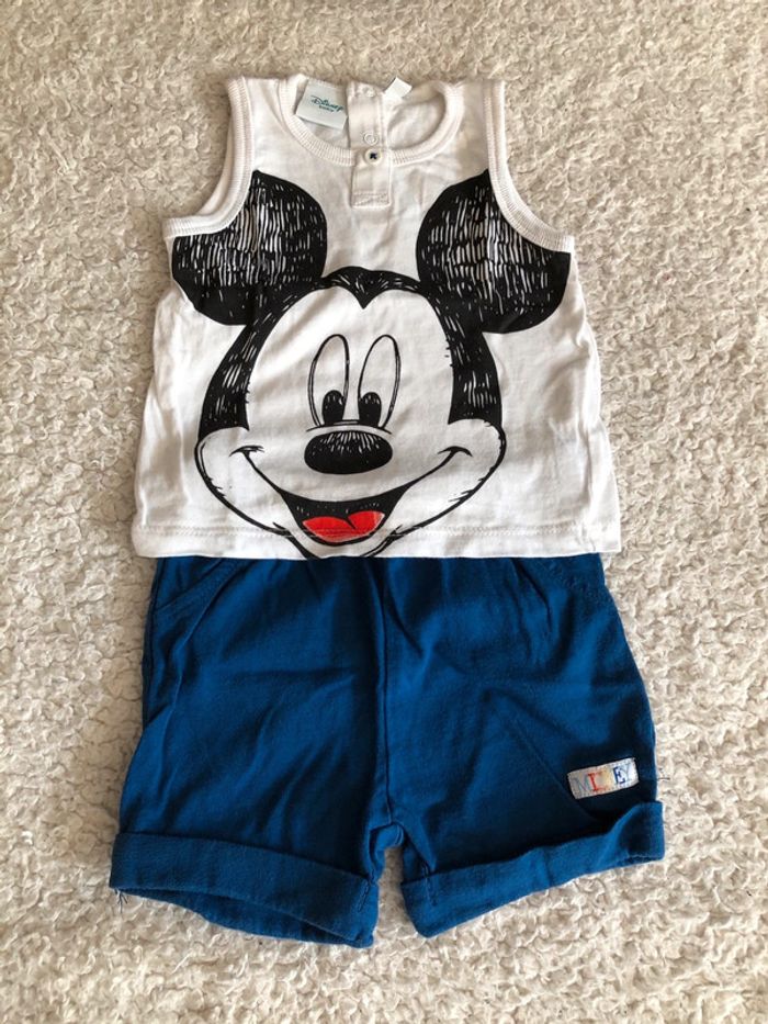 Ensemble Mickey 6 mois. Short et débardeur, juste passé en machine mais jamais porté