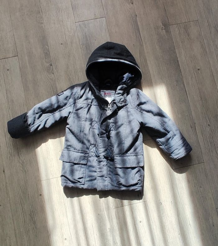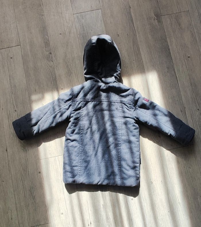 Manteau épais avec capuche et 2 poches Marque Okaïdi En bon état juste un bout cassé cf photo Taille 4 ans 102cm