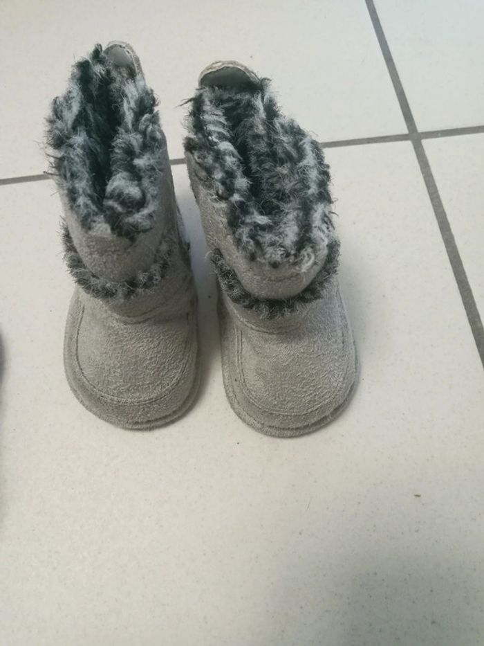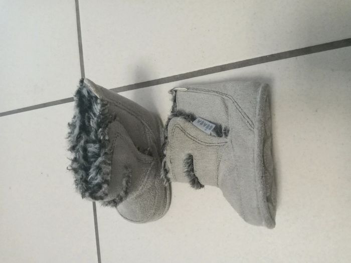 Petites bottines grises en 17/18 bon etat. Semelle souple. Cuir à l'intérieur