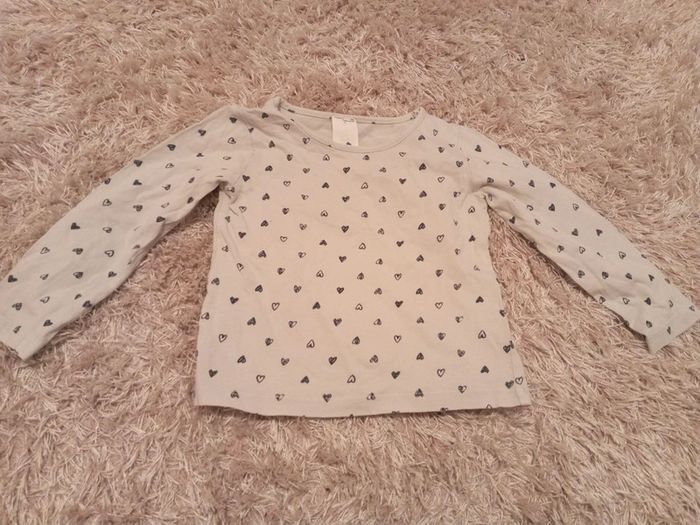 T shirt Manche longue fille 2 ans en bon etat motif cœur