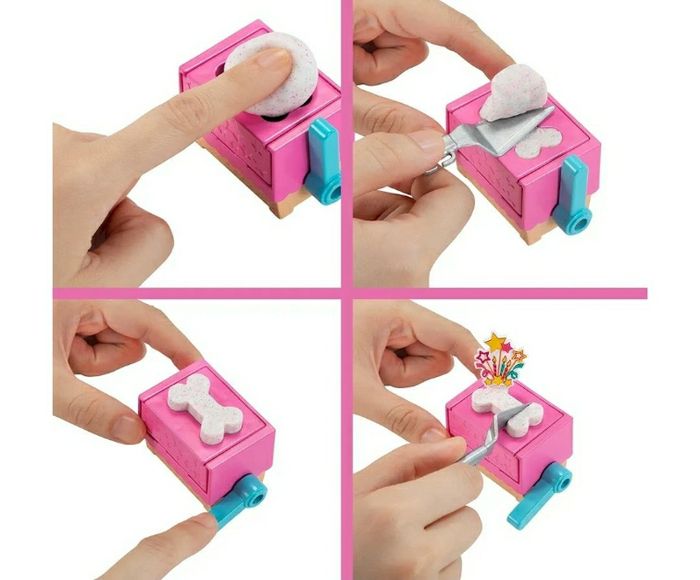 NEUF JAMAIS OUVERT BARBIE ANNIVERSAIRE DES CHIENS MATTEL Etat : neuf Ce coffret Barbie Anniversaire des Chiots, avec ses 2 chiots et ses nombreux éléments adorables, ravira les enfants de 3 à 9 ans, surtout ceux qui aiment les animaux Les enfants vont adorer manipuler la pâte à modeler tout en inventant de belles histoires Remplissez le moule à gteau avec la pâte à modeler (2 couleurs fournies), puis appuyez sur le levier pour que la pâte lève et forme une adorable friandise en forme d'os Décorez les friandises avec les accessoires fournis sur le thème des étoiles et des arcs-en-ciel, puis servez-les dans les gamelles colorées. Le plus grand des deux chiots peut « mâchouiller» lorsqu'on appuie sur sa queue D'autres accessoires incluent des chapeaux de fête pour les chiots, une pelle à dessert et un paquet cadeau qui s'ouvre et se ferme et contient une balle avec laquelle les chiots vont pouvoir s'amuser La poupée Barbie est articulée au niveau des genoux pour des histoires réalistes et porte une robe décontractée à motif tournesols et des chaussures blanches