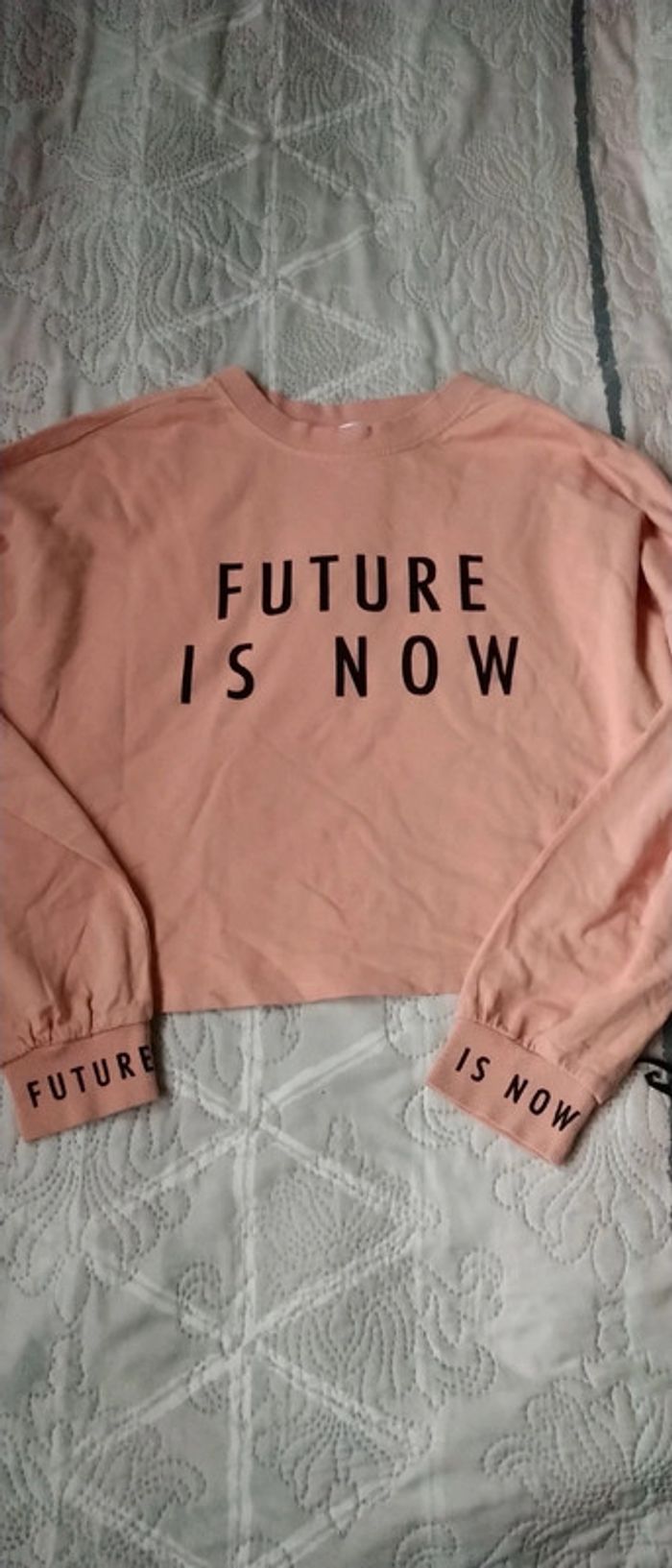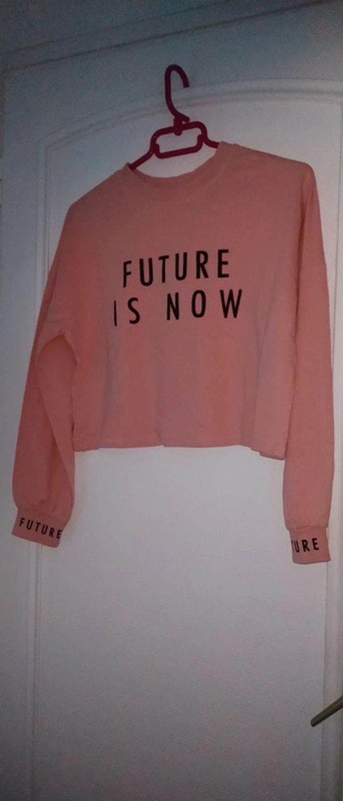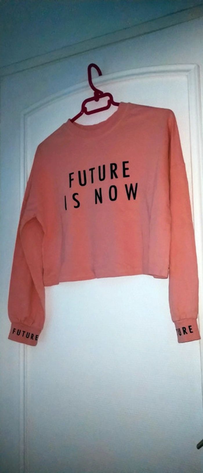 Sweat court coupe large oversize texte future is now devant en coton léger longueur 47 cm largeur aisselles à aisselles 54 cm largeur épaules 66 cm jamais porté état neuf n hésitez pas à faire un lot dans mon dressing pour bénéficier d une réduction #midole #midolefemmexs #midolefemme #sweat #sweatleger #sweatoversize #sweatcourt #femmexs
