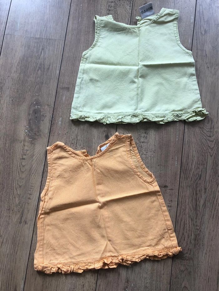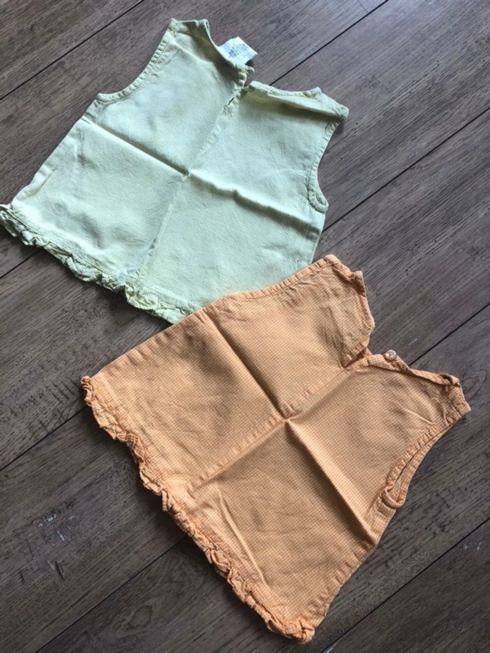 2 débardeurs 3 ans il manque le boutons à l’arrière sur le vert et la couleur est un peu passé le orange est en parfait état #troisansfille_anais #troisansjumeaux_anais