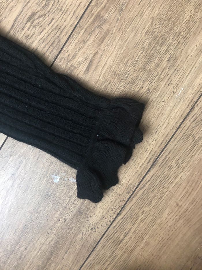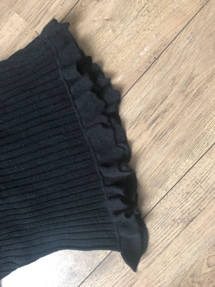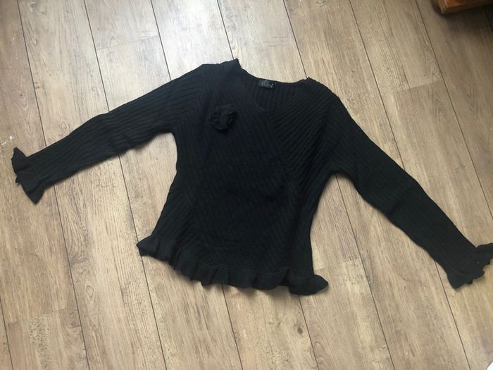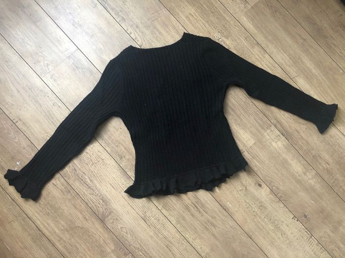 joli pull noir, avec froufrou en bas et au manches, taille unique, peu porté #femmetailleunique_anais
