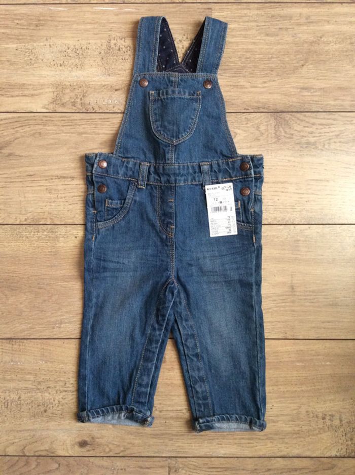 salopette en jean, neuve, 12 mois, pressions à l’entrejambe, idéal pour offrir #douzemoisfille_anais #enfantneuf_anais