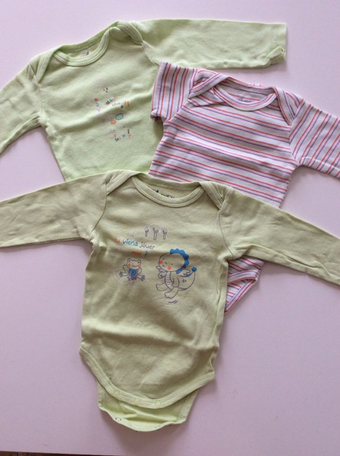 lot de 3 bodies, 2 presque pas portés (photo 3 et 4) et le 3 émet porté plus souvent (photo 2) #sixmoisgarcon_anais #sixmoisfille_anais