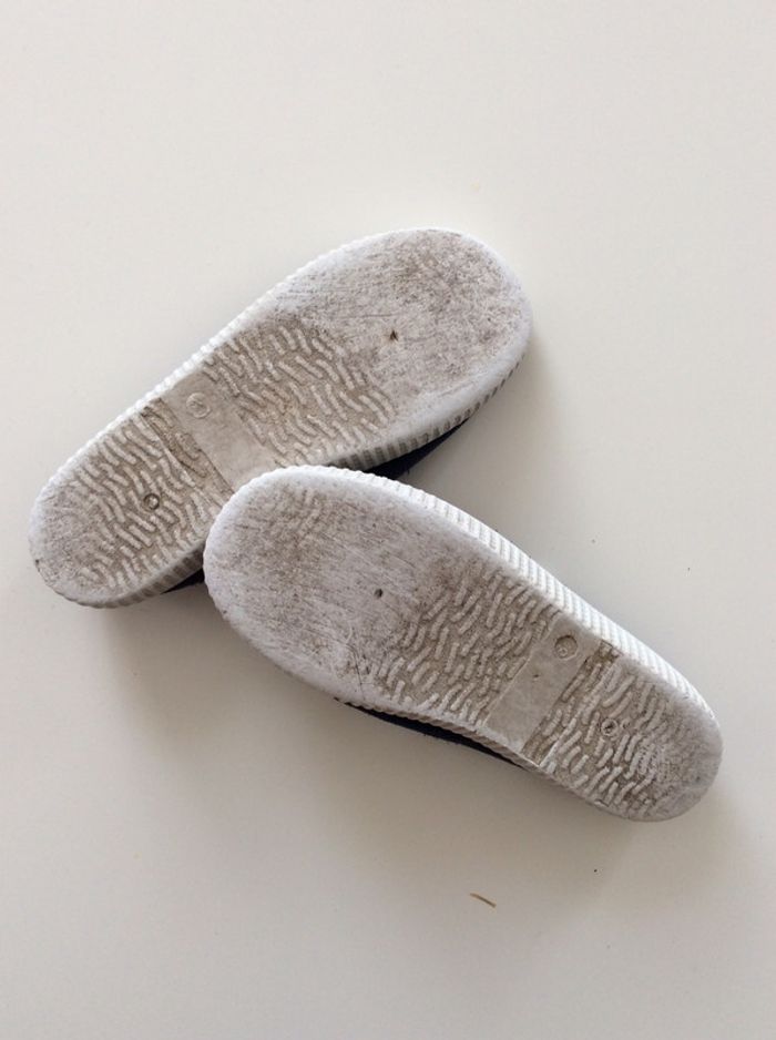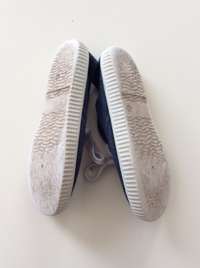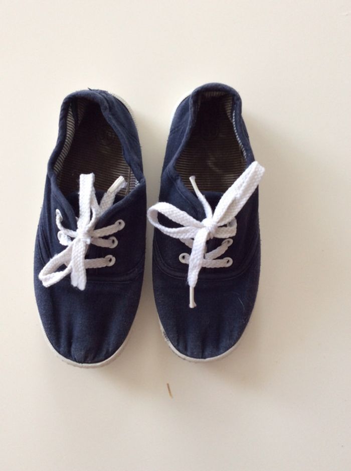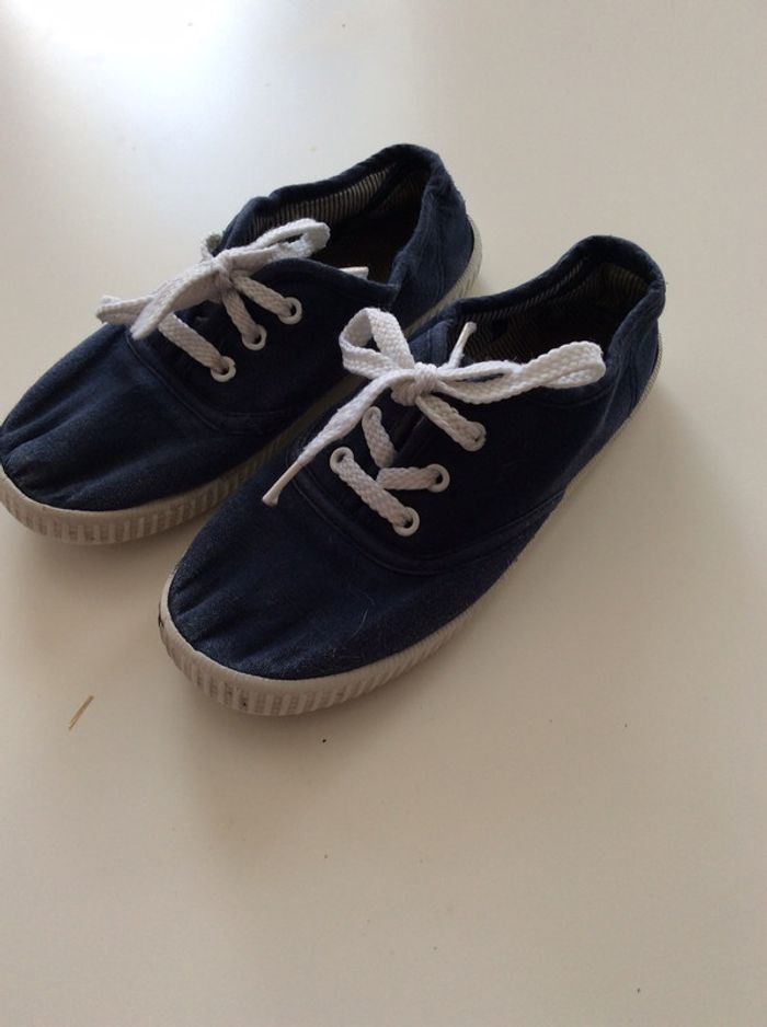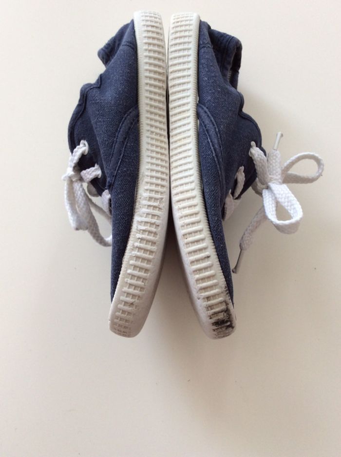 baskets en toile bleu marine, taille 30, la toile a blanchi un peu à certains endroit, les semelles blanches ont des taches qui résistent (voir photos 5 et 6) #chaussuresenfant_anais