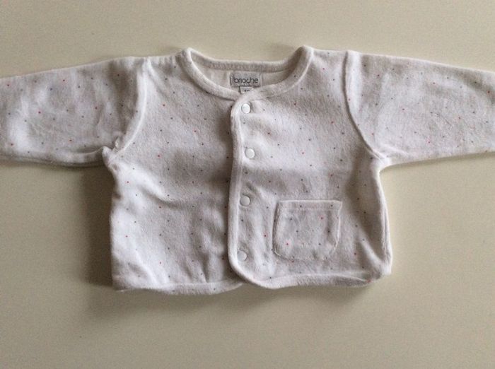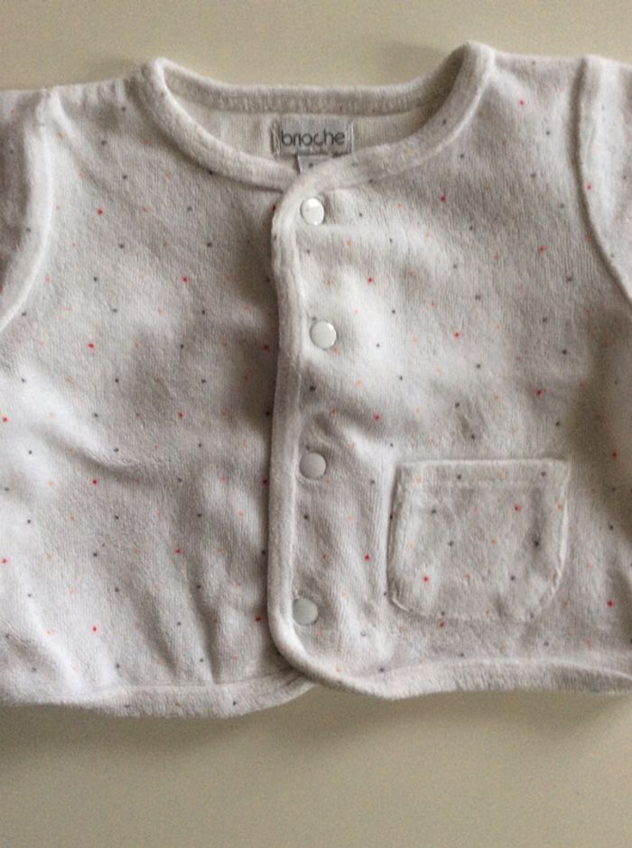 gilet velours blanc avec petits pois rouge, orange, gris, 3 mois #troismoisgarcon_anais #troismoisfille_anais