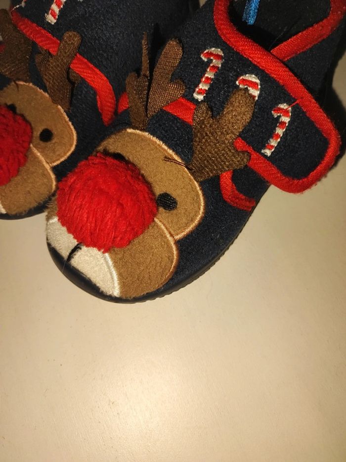 Chaussons renne de Noël Mixte Pointure 21 Le pom-pom du pied droit est un peu décousu. Manque les semelles intérieures ⚠️ #chaussonsrenne21 #chaussonmixte #chaussonsenfant