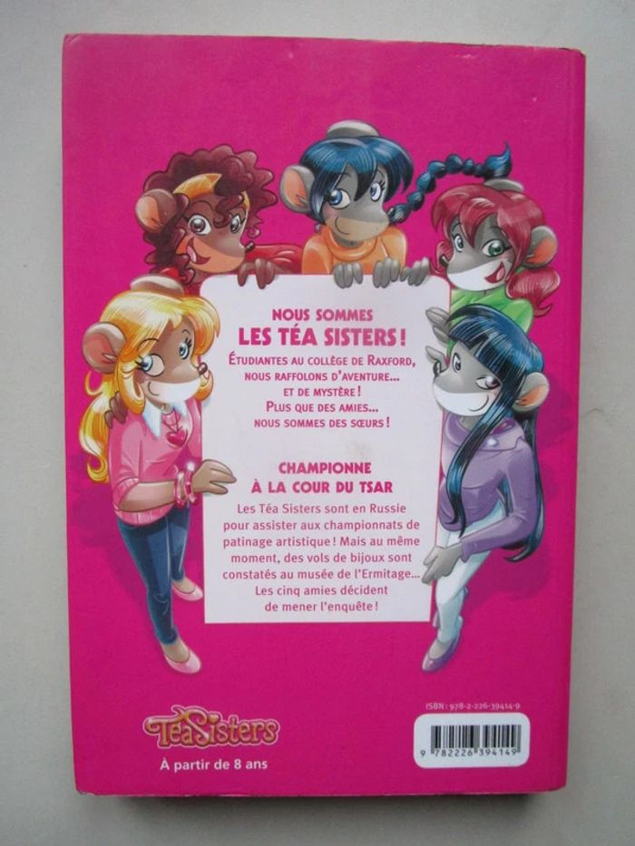 Colette, grande admiratrice de patinage artistique, convainc les Téa Sisters de partir assister aux championnats de ce sport, qui ont lieu cette année en Russie. à peine arrivées à Saint-Pétersbourg, et par un heureux hasard, les cinq filles se lient d'amitié avec la célèbre patineuse Alexandra Skatenova ! Mais depuis quelques temps, des bijoux appartenant à la dynastie des Romanov disparaissent du musée de l'Ermitage... et c'est Alexandra qui est soupçonnée d'être la voleuse ! Les Téa Sisters croient dur comme fer à son innocence et feront tout leur possible pour mener l'enquête et innocenter leur nouvelle amie avant la compétition ! Éditeur ‏ : ‎ Albin Michel 224 pages Âge de lecture ‏ : ‎ 8 - 11 ans Dimensions ‏ : ‎ 14.2 x 1.8 x 21 cm Livre en excellent état Si plusieurs livres vous intéressent, n'hésitez pas à m'envoyer un message afin que je vous constitue un lot et ainsi bénéficier de réduction. #téastilton #russie #tsar