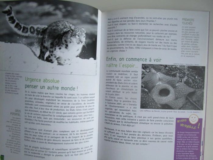 L'air, les océans et les glaciers, le monde animal et végétal sont notre trésor commun. Et, pourtant, nous avons laissé souiller, surexploiter, blesser cet espace, ce berceau naturel de la belle histoire des hommes… Comment transformer, maintenant, nos peurs et nos immenses espoirs en petites victoires de chaque jour, en grandes décisions pour la planète ? Comment vivre autrement, dès aujourd'hui, de manière à garantir ce développement durable et solidaire de toute l'humanité ? En s'informant, en débattant, et en osant prendre parti quand un jardin est en péril ou qu'un humain a soif, quelque part sur la Terre. Éditeur ‏ : ‎ Editions Rue du monde 121 pages Âge de lecture ‏ : ‎ 6 - 11 ans Dimensions ‏ : ‎ 20 x 1.7 x 29.5 cm Livre en excellent état Je vends d'autres livres de la même collection #phil_peg_ruedumonde #ruedumonde #planète #écologie