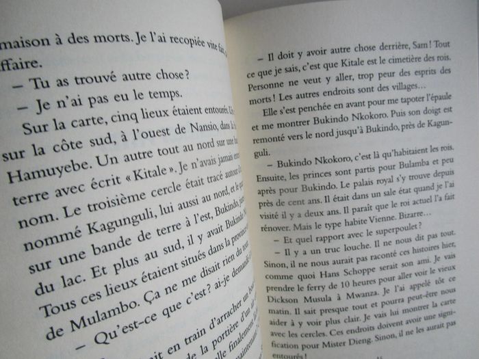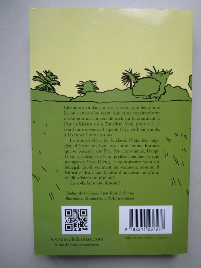 Quand on vit dans un trou perdu au milieu d'une île, on a envie d'en sortir. Sam et ses copains rêvent d'assister à un concert de rock sur le continent, à Dar es-Salaan ou à Zanzibar. Mais, pour cela, il leur faut trouver de l'argent. Or, c'est bien simple, à Ukerewe il n'y en a pas... Le nouvel élève de la classe, Papis, leur suggère d'écrire un livre, avec une bonne histoire, qui se passerait sur l'île. Peu convaincue, Happy Ulisa, la cousine de Sam, préfère chercher ce que manigance Papa Dieng, le commissaire venu du Sénégal. Est-il vraiment en vacances, comme il l'affirme ? Est-il sur la piste d'un trésor ou d'une vieille affaire non résolue ? La voilà, la bonne histoire ! Editeur : Ecole des Loisirs Âge : 8 - 11 ans Dimensions : 21 x 15 cm Livre en parfait état #écoledesloisirs #Afrique #ingénieux, débrouillard #aventure et mystère