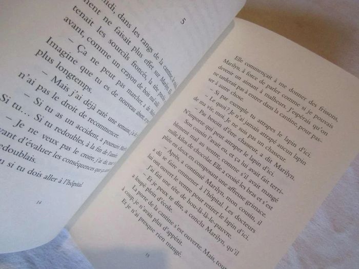 À part moi, personne ne fait attention à Marilyn. C’est presque comme si elle était invisible. À l’école, personne ne vient lui parler. Lionel Hénon et sa bande ne lui proposent jamais de jouer avec eux. La bande d’Augustin non plus. Que ce soit en calcul ou en poésie, monsieur Varol oublie systématiquement de l’interroger. Parfois, même ses parents oublient de venir la chercher à la sortie. Tu existes pour moi, ai-je dit à Marilyn, mais elle m’a répondu que cela ne suffisait pas. Elle a beaucoup réfléchi et n’a trouvé qu’une seule issue. Je vais devenir célèbre, m’a-t-elle dit en sortant de sa poche un carnet à autographes et un stylo. Quand elle m’a expliqué son plan, j’ai pensé que cela ne marcherait jamais. Et pourtant… Éditeur : L'école des loisirs Tranche d'âge : 8-11 ans Format : 12 x 18 cm Livre NEUF! Tous mes livres à vendre, notamment de l'Ecole des Loisirs, sont ici : #phil_peg_livres #écoledesloisirs #école, instituteur #regard des autres #télévision