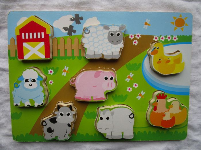 Puzzle en bois premier âge animaux de la ferme. En bon état