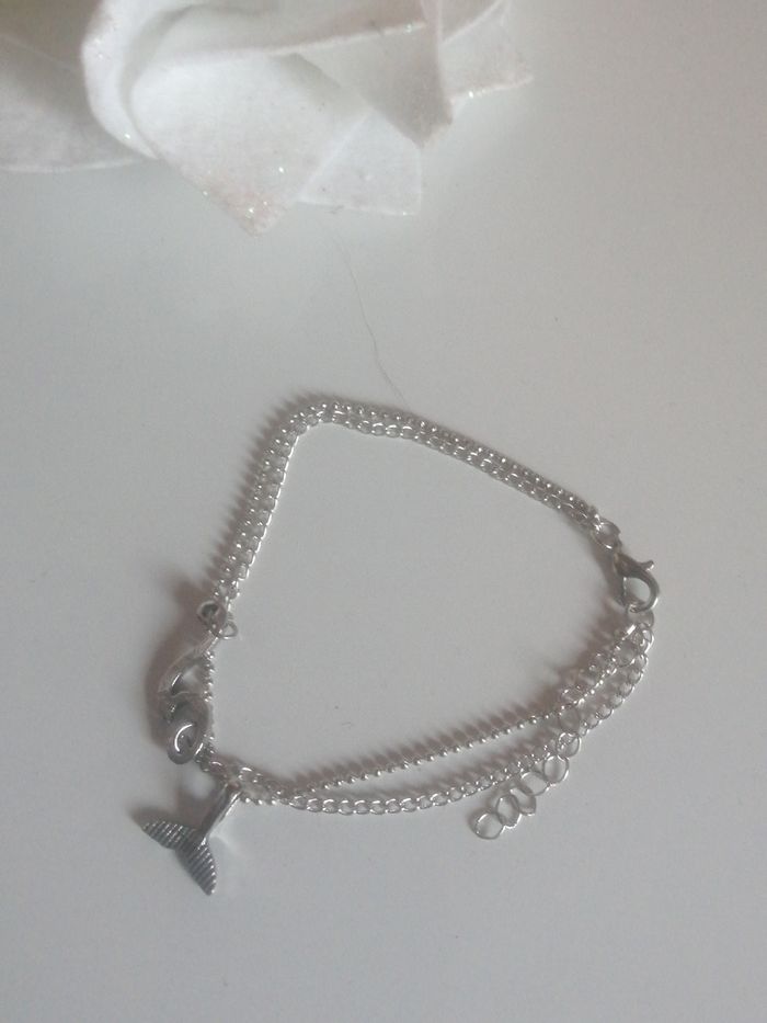 Très bon état🌸Très bon état, porté un été 🌸Acheté en boutique 🌸Peut être porté en bracelet au poignet ou à la cheville. Pampilles vague et aile de raie 🌸Acier argenté inoxydable, sans nickel 🌸Longueur détachée 20 cm plus 5 cm de chaîne pour ajuster #braceletargenté #doublebraceletdecheville #doublebracelet #chainemailleboule #braceletdecheville #pampillevague #pampilleailederequin #vague #ailederaie #braceletchaine #braceletcharms #charms