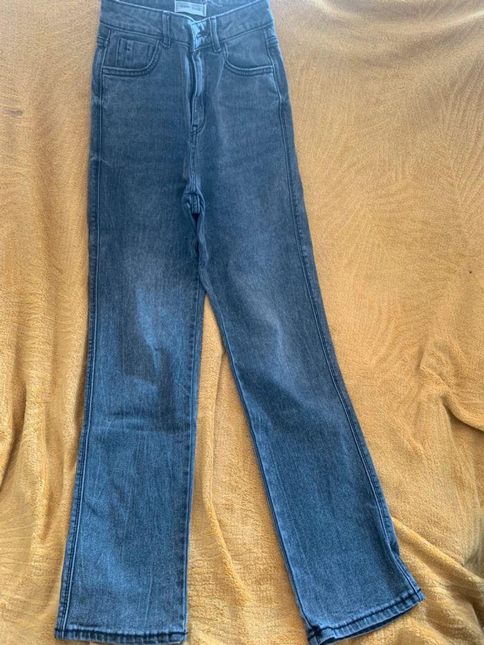 Jeans droit, taille haute, 5 poches, fermeture à zip&bouton, taille XXS/32 « Pimkie » #jeans #pimkie #jeanspimkie #jeanstaillexxs #jeanstaille32 #jeansgris