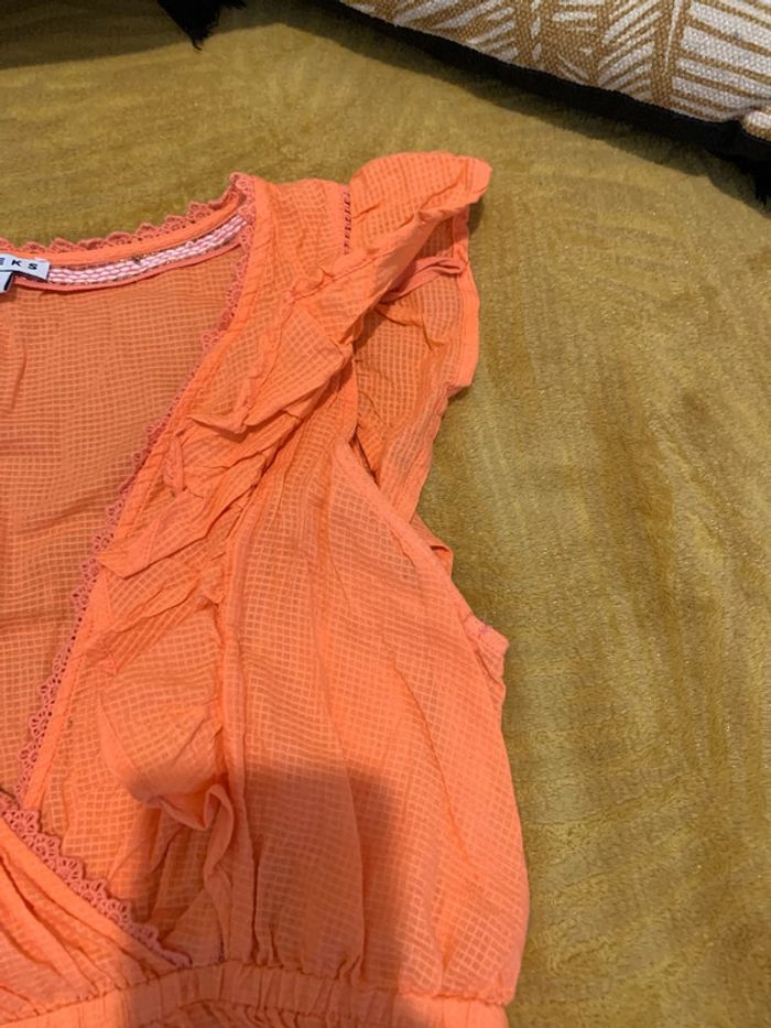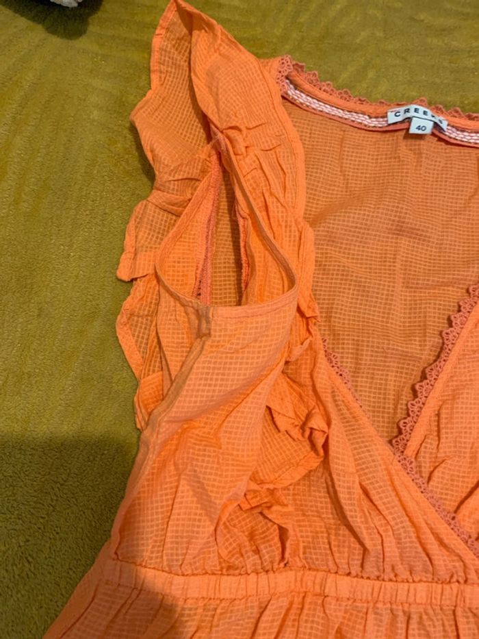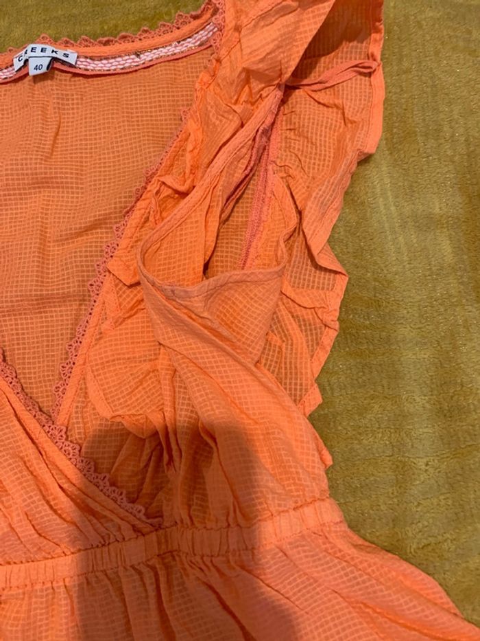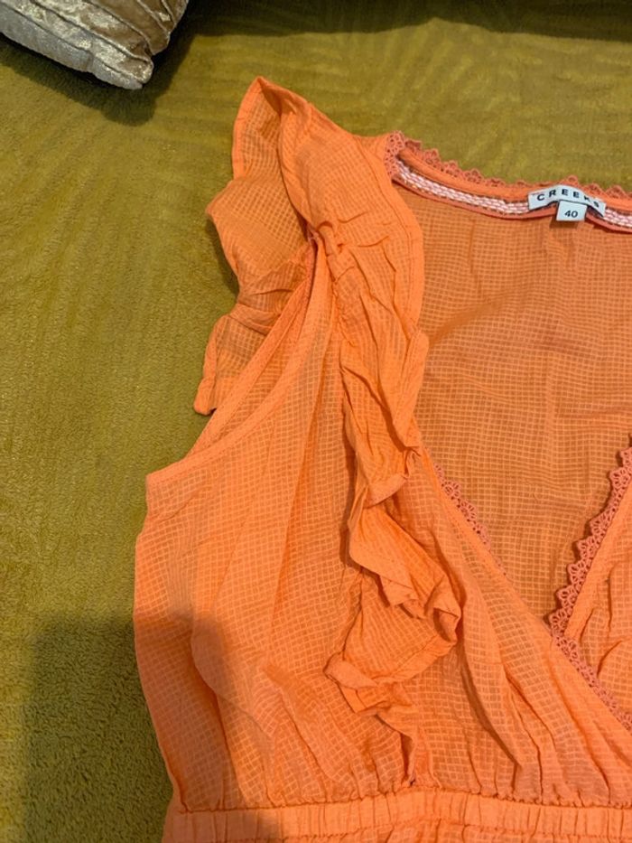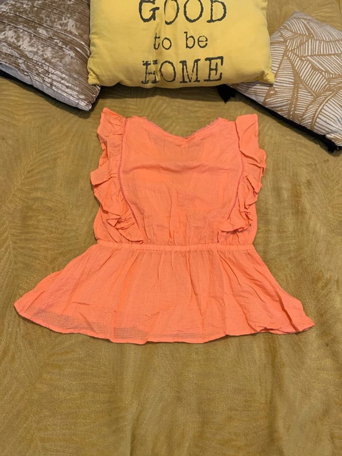 Haut peplum femme manches courtes à volants, col en V, effet ceinturé, bas évasé, détails dentelles « Creeks » T40 #haut #hautfemme #hautfemmetaille40 #hautcreeks #creeks #été #soleil #petithaut