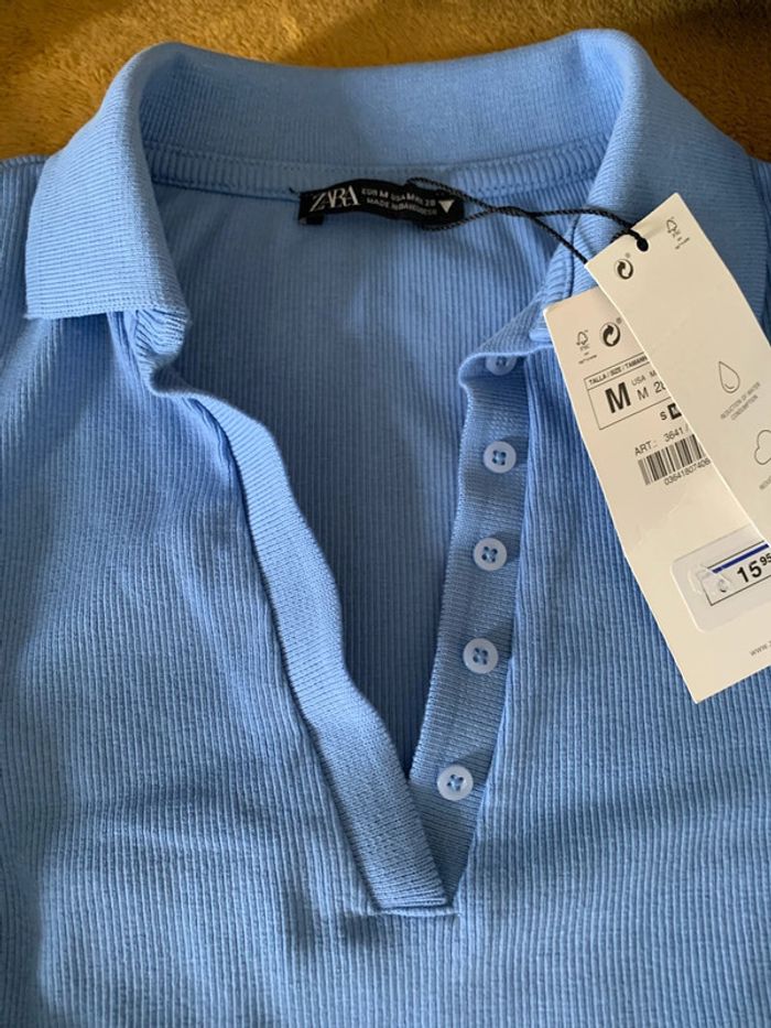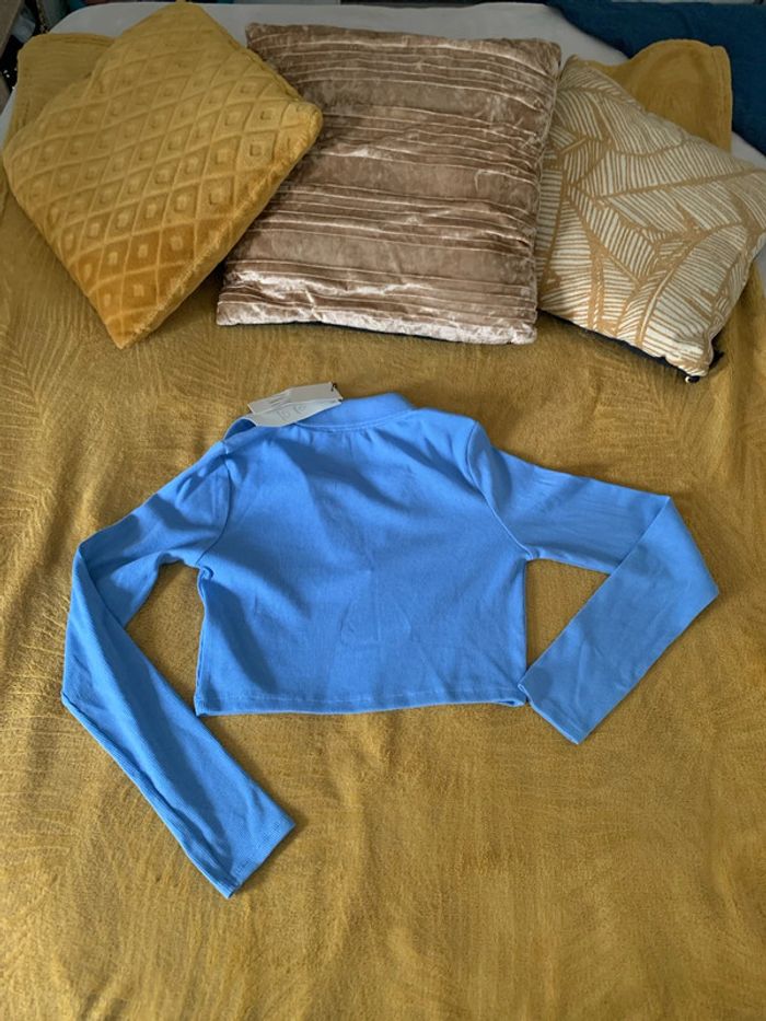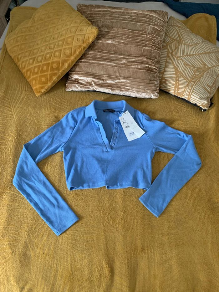 Tee-shirt crop top cotelé, col en V, manches longues « Zara » taille M Neuf #croptop #croptopzara #zara #ceoptopcolv #croptopmancheslongues #taillem #croptopm #teeshirtcroptop