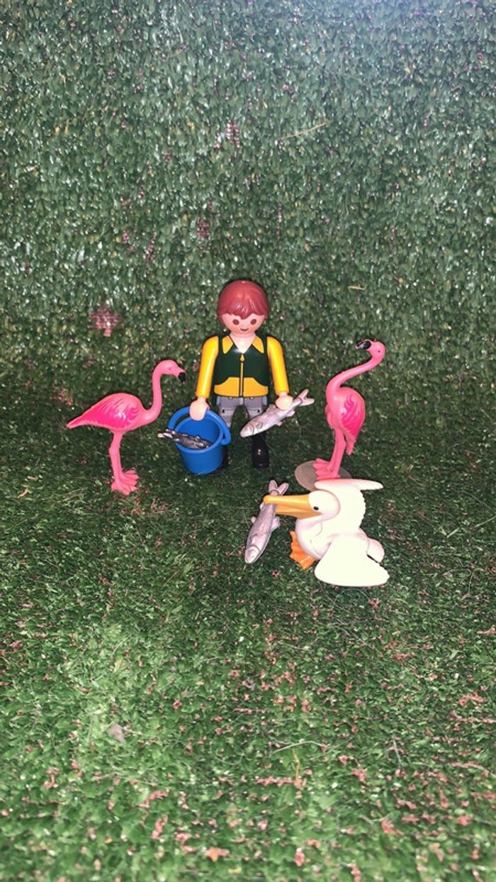 Playmobil gardien de zoo - un gardine zoo - deux flamants roses 🦩 - un pélican - des poissons - un seau Sans boîte 📦 manque juste un support flamant #playmobil #playmobilgardienzoo #playmobilflamantsroses #playmobilprlican