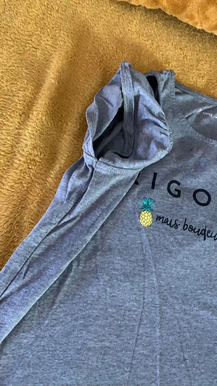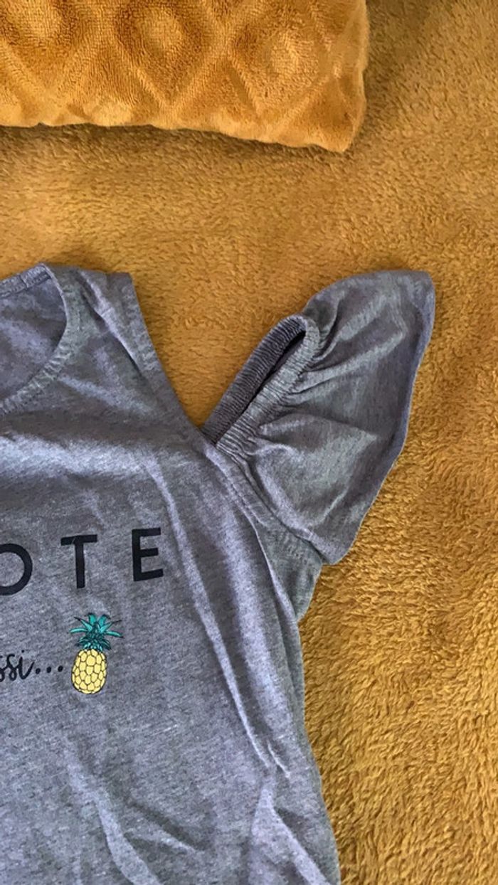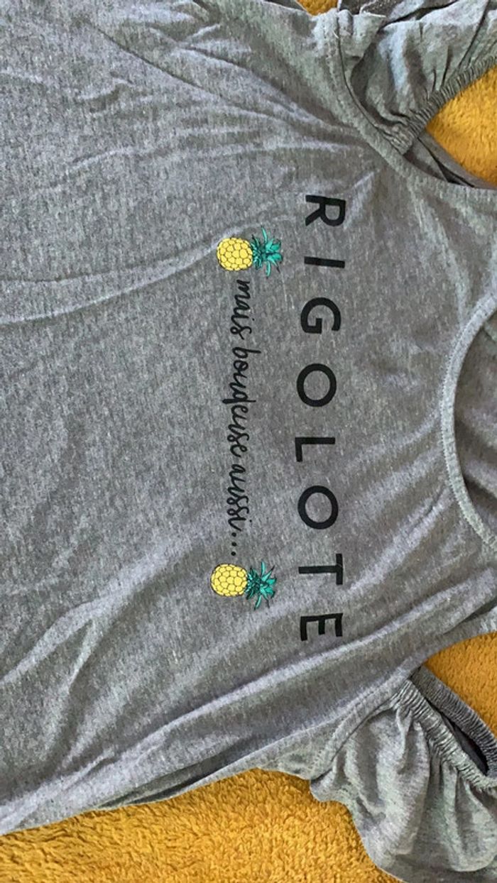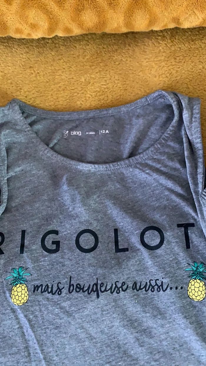 Top à volants, logo central « RIGOLOTE mais boudeuse aussi 🍍 », taille 12 ans « Gemo blog » #topavolants #topfille #topfille12ans #gemo #gemoblog #topgemofîlle