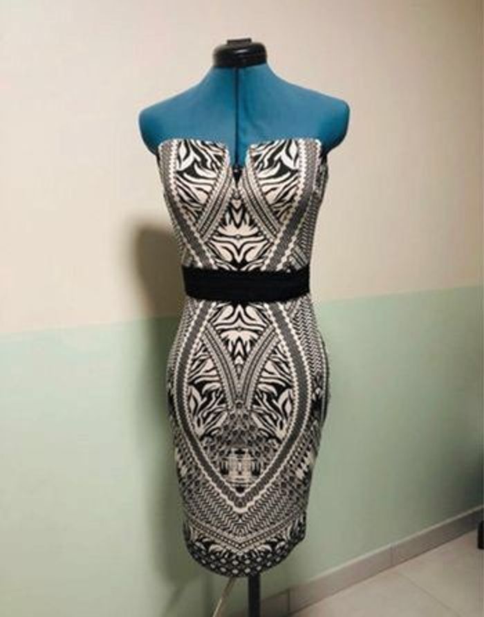 Mot clé: robe cocktail sans bretelle habillée robe courte soirée tendance motif noir blanc tenue de fêtes wednesday dress mercredi addams Style emo rock mercredi addams wednesday Adams goth gothique chic pop rock imprimé animal zèbre léopard