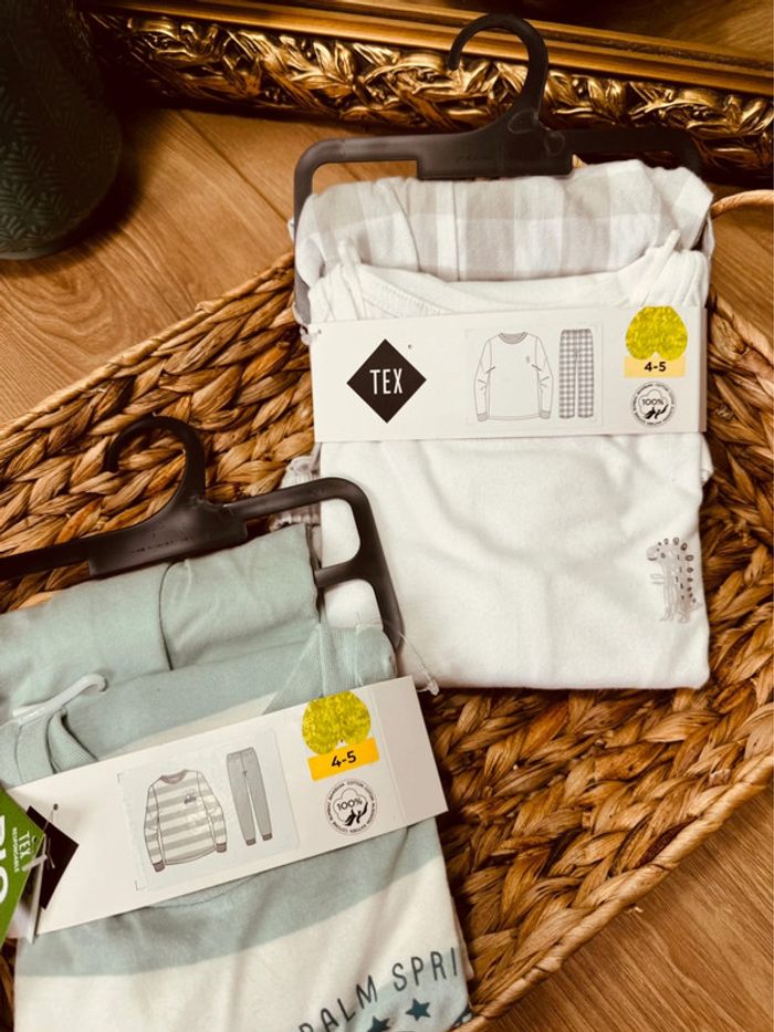 Taille 4-5 ans set de 2 pyjamas 2 pièces coton fin et flanelle garçon Tex vert blanc gris Neufs 💙 - photo numéro 1