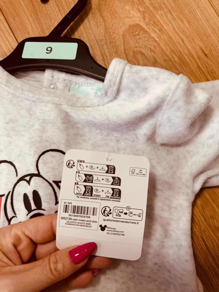 Taille 9 mois pyjama en velours garçon Disney gris clair Neuf * Mickey * 💙 - photo numéro 4