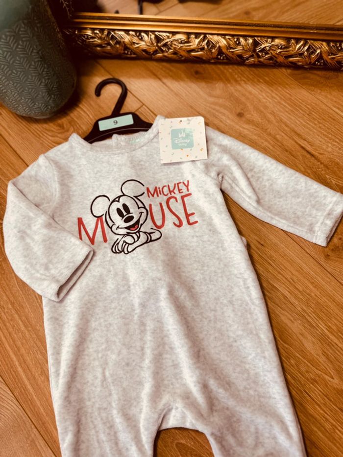 Taille 9 mois pyjama en velours garçon Disney gris clair Neuf * Mickey * 💙 - photo numéro 1
